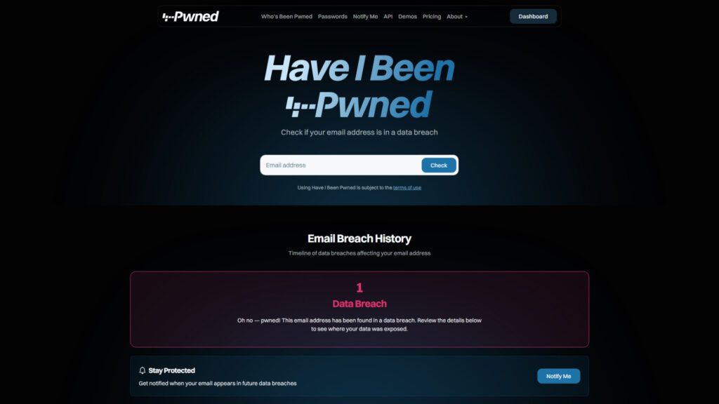 Image via Have I Been Pwned.